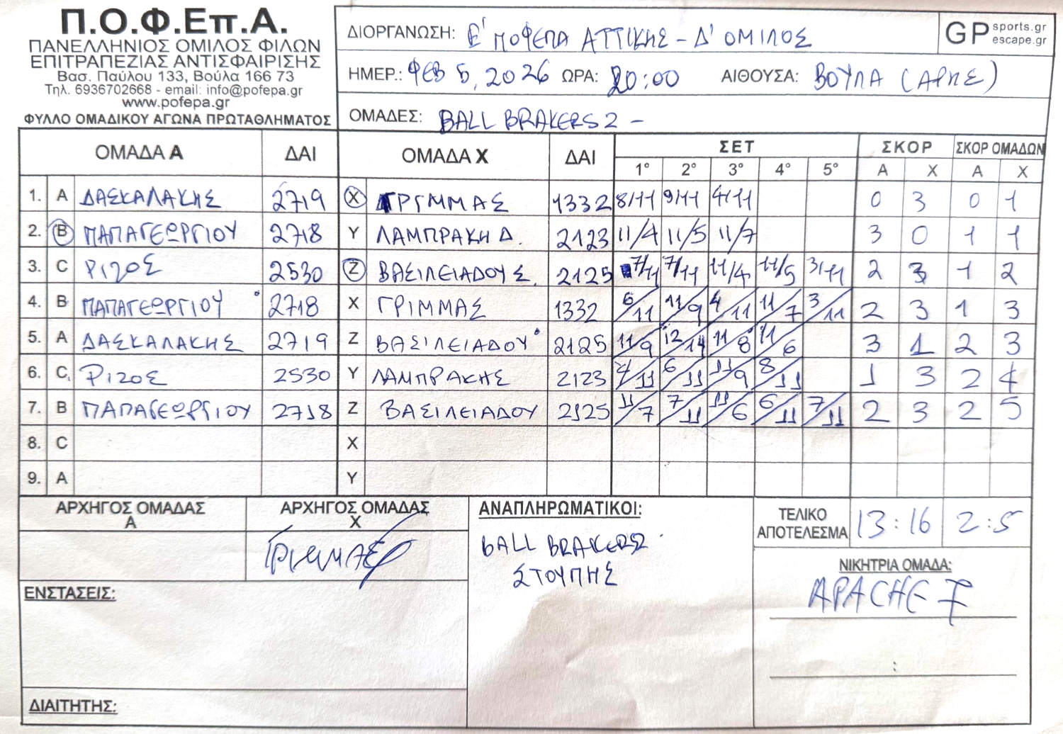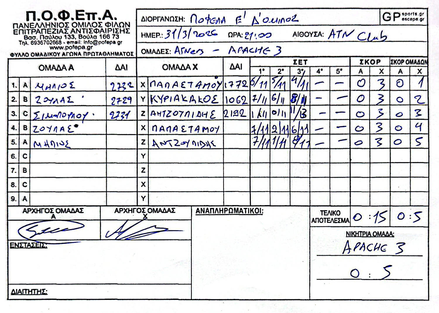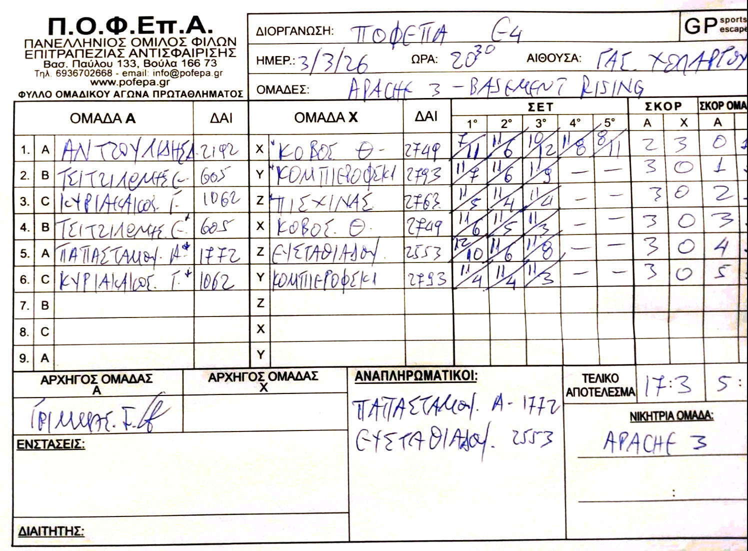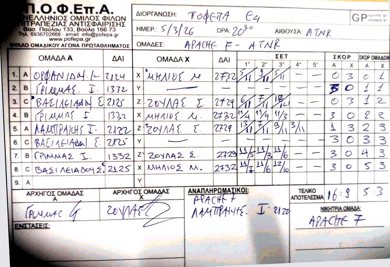 APACHE 3 ΧΟΛΑΡΓΟΥ NOSPINATALL ROLL THE PONC ΜΑΓΚΟΥΦΑΝΑ 2 ΑΝΑΛΩΣΙΜΟΙ 4 LEOFOROS 1908 |