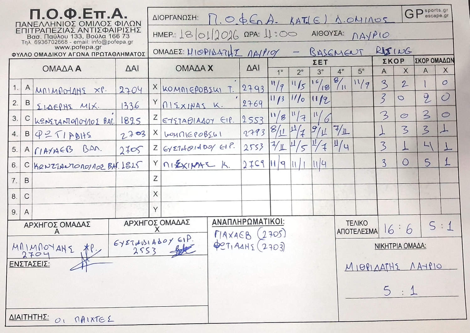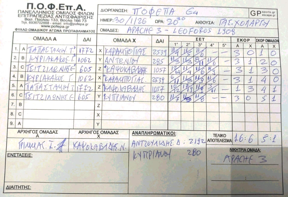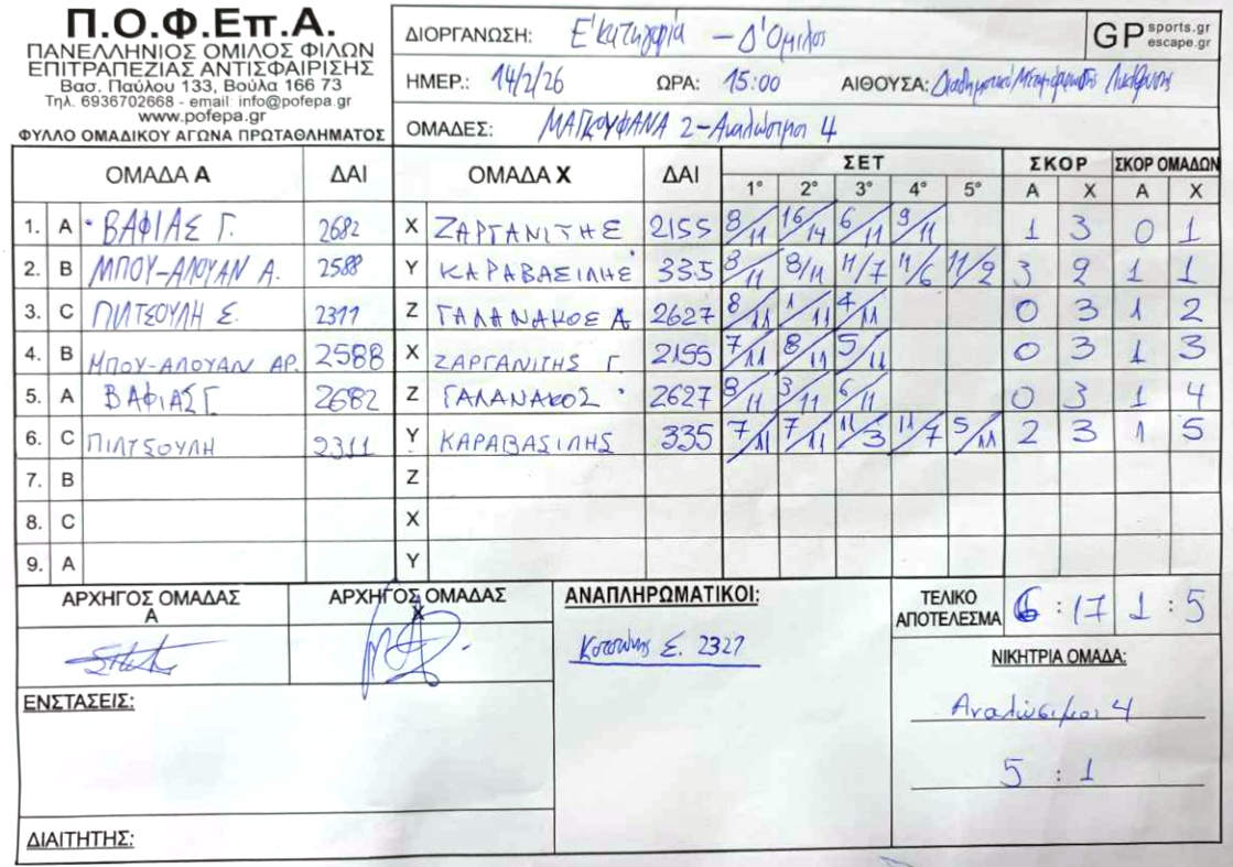 6η Αγωνιστική (22/12/2025 - 11/1/2026)