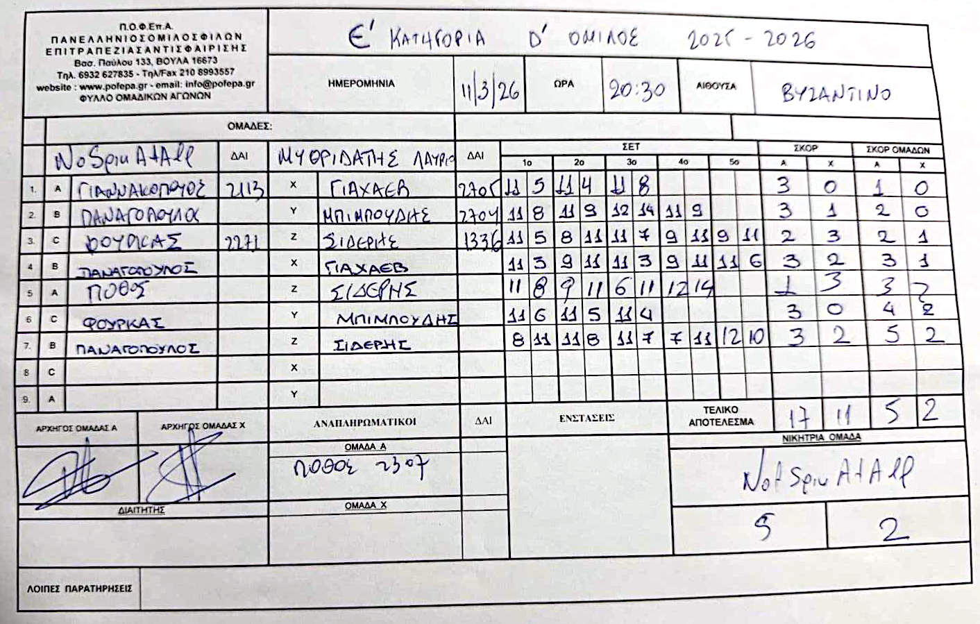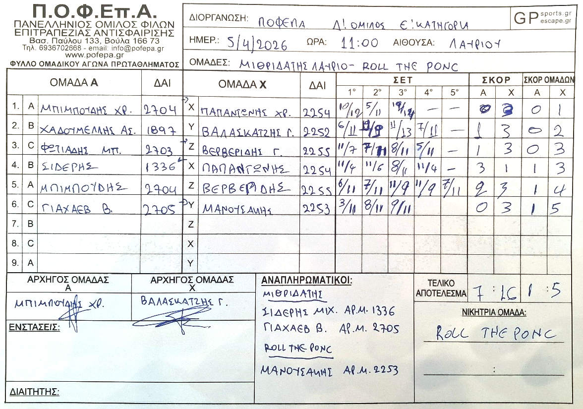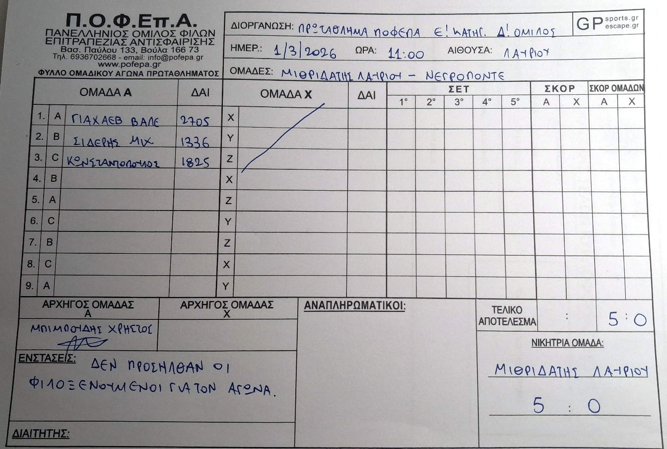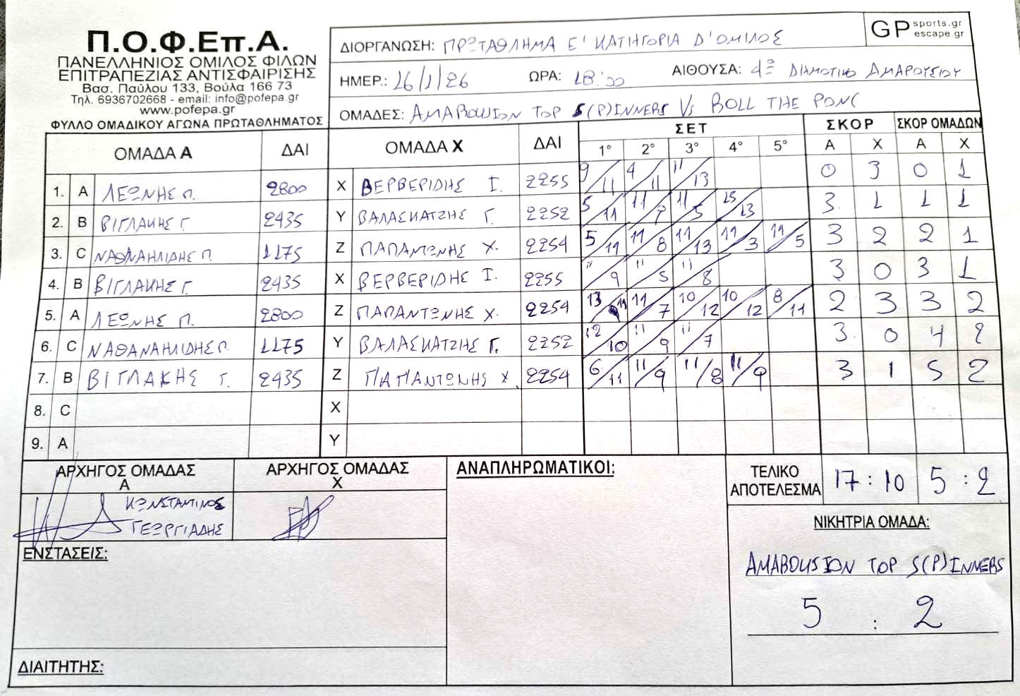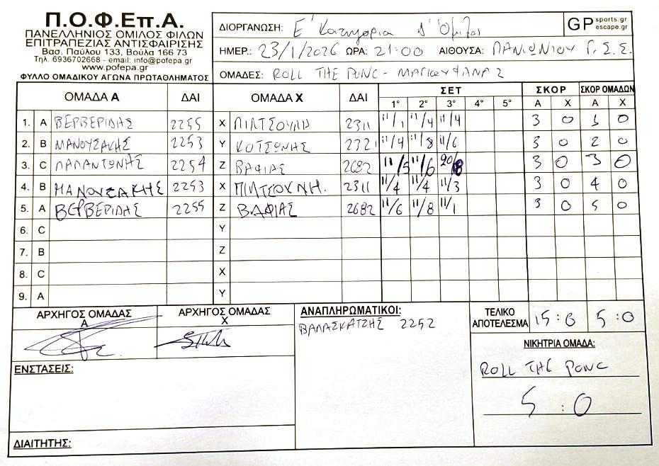 5η Αγωνιστική (8-14/12/2025)