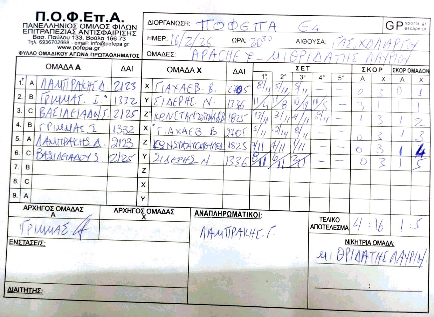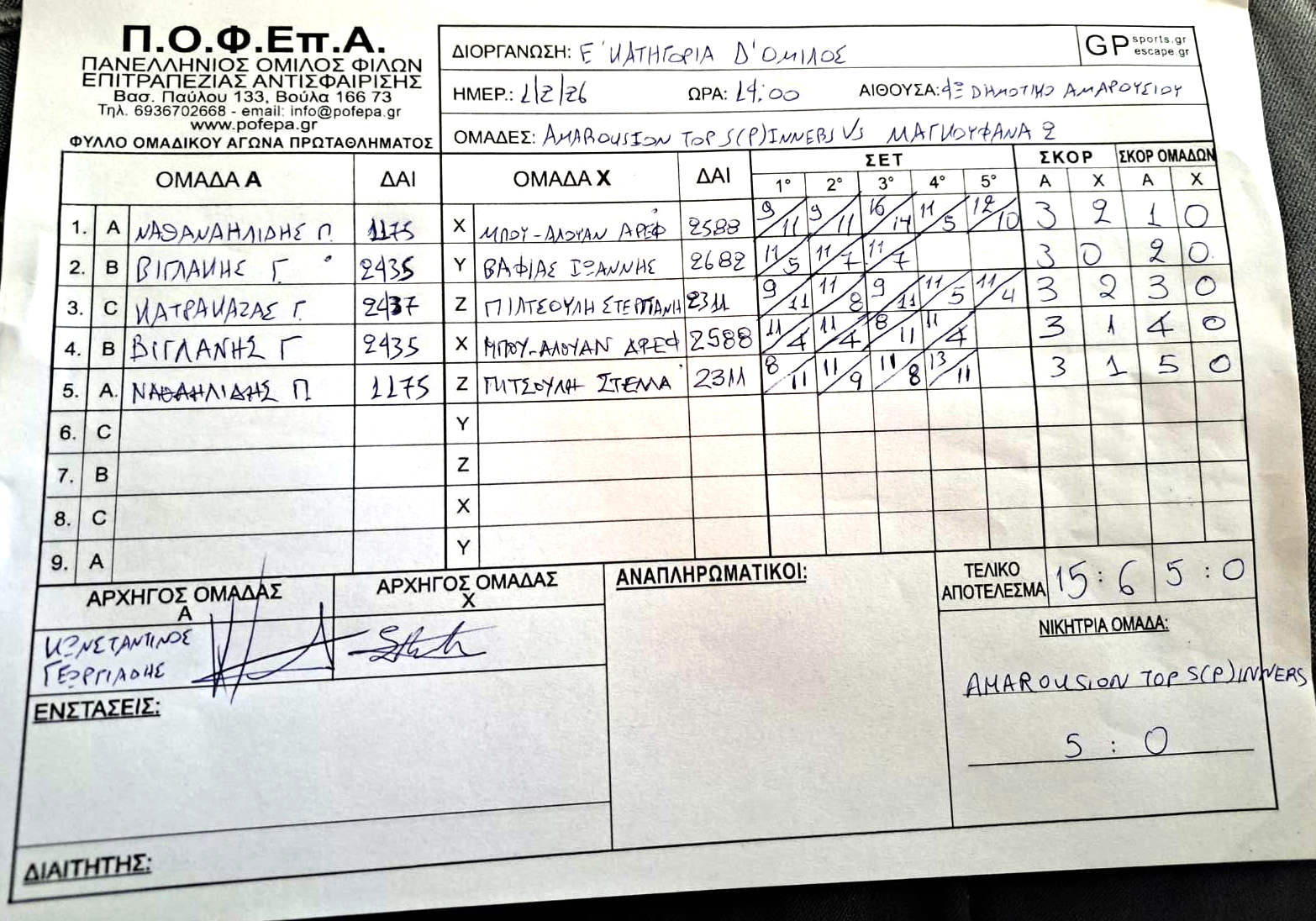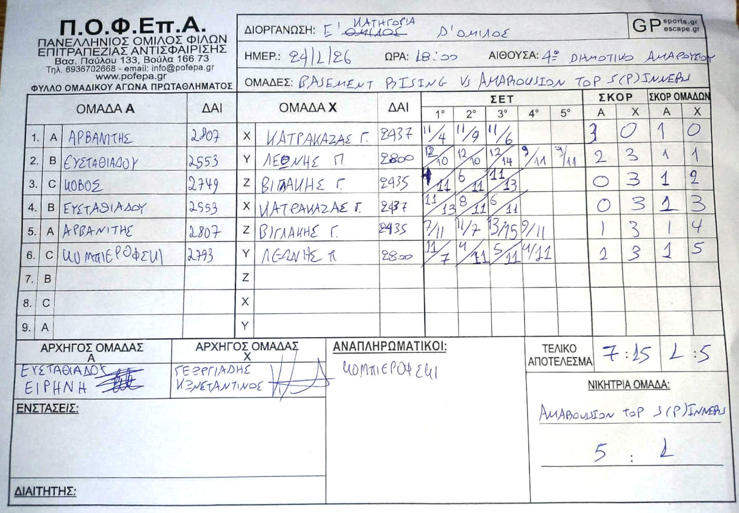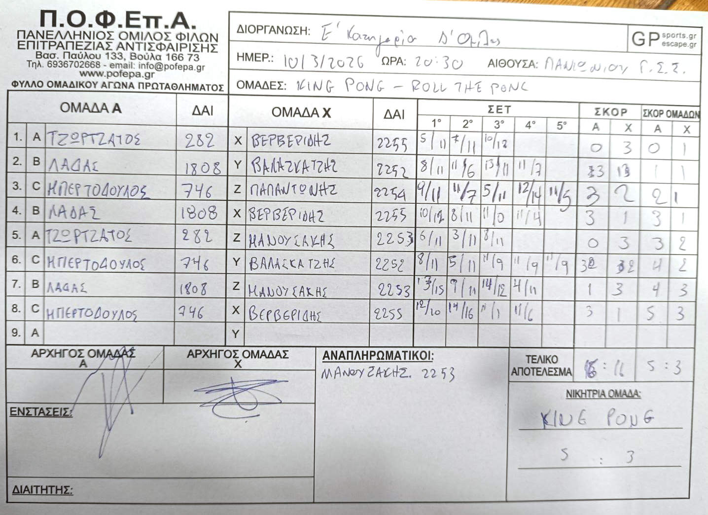 5η Αγωνιστική (8-14/12/2025)