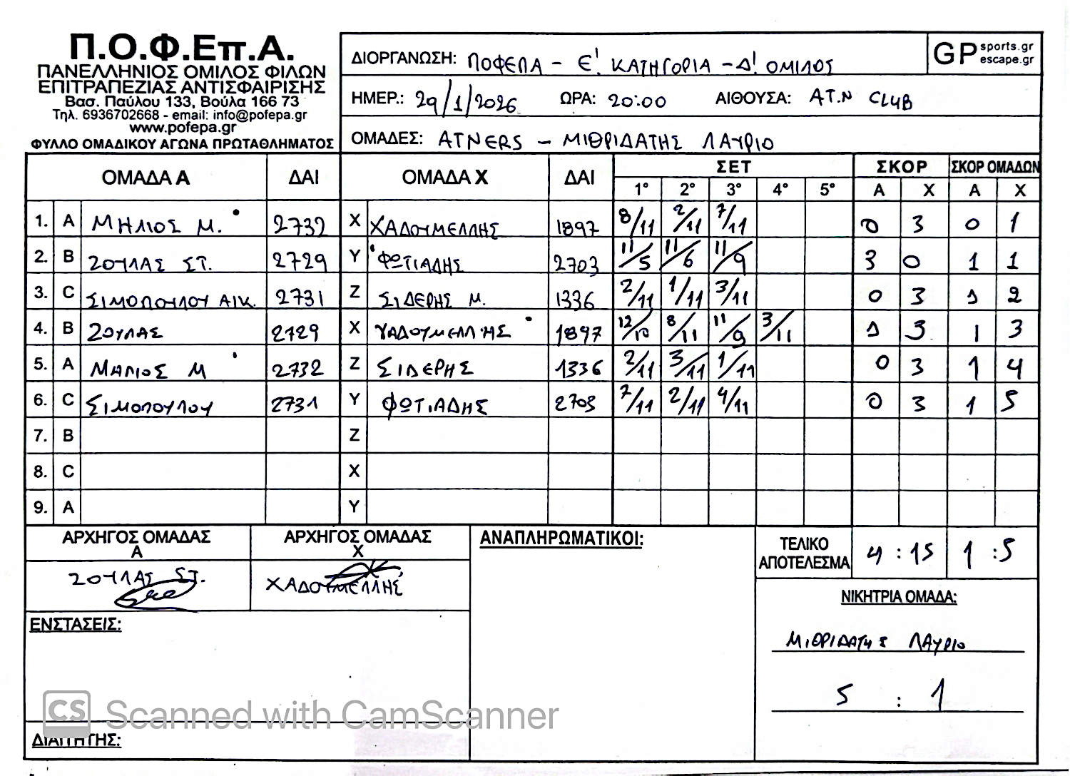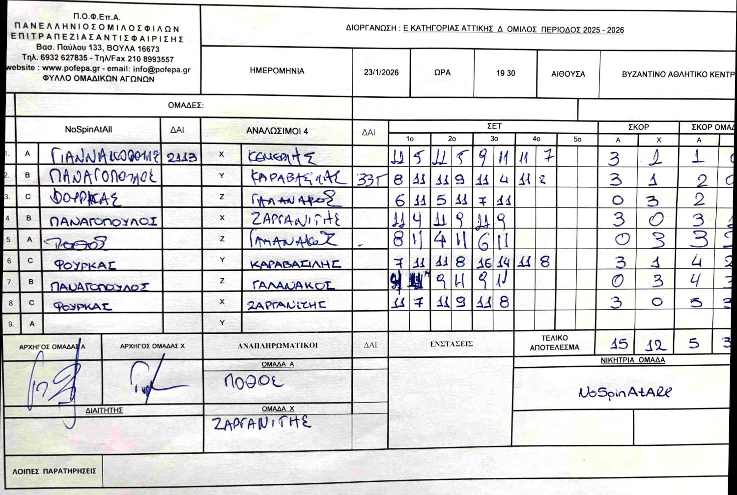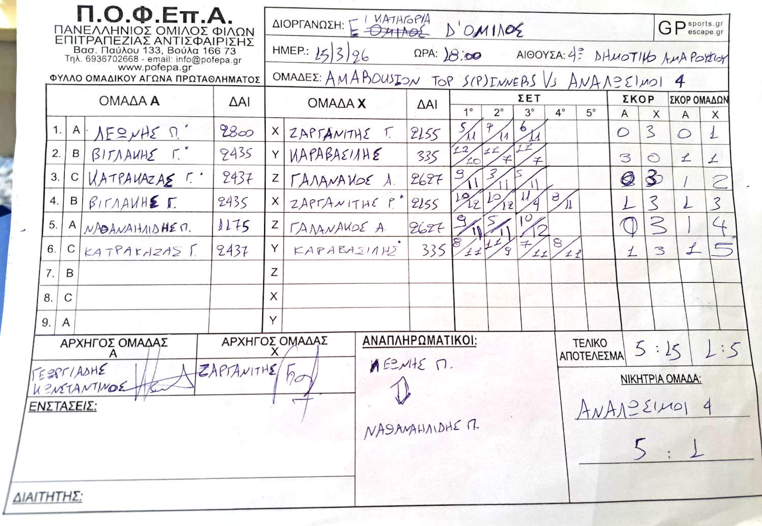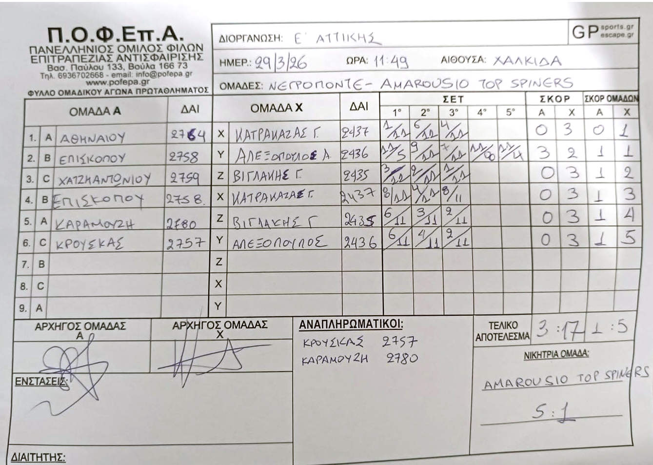 5η Αγωνιστική (8-14/12/2025)