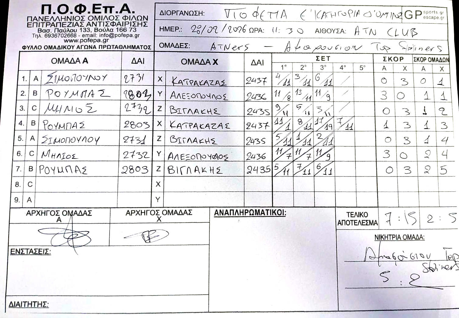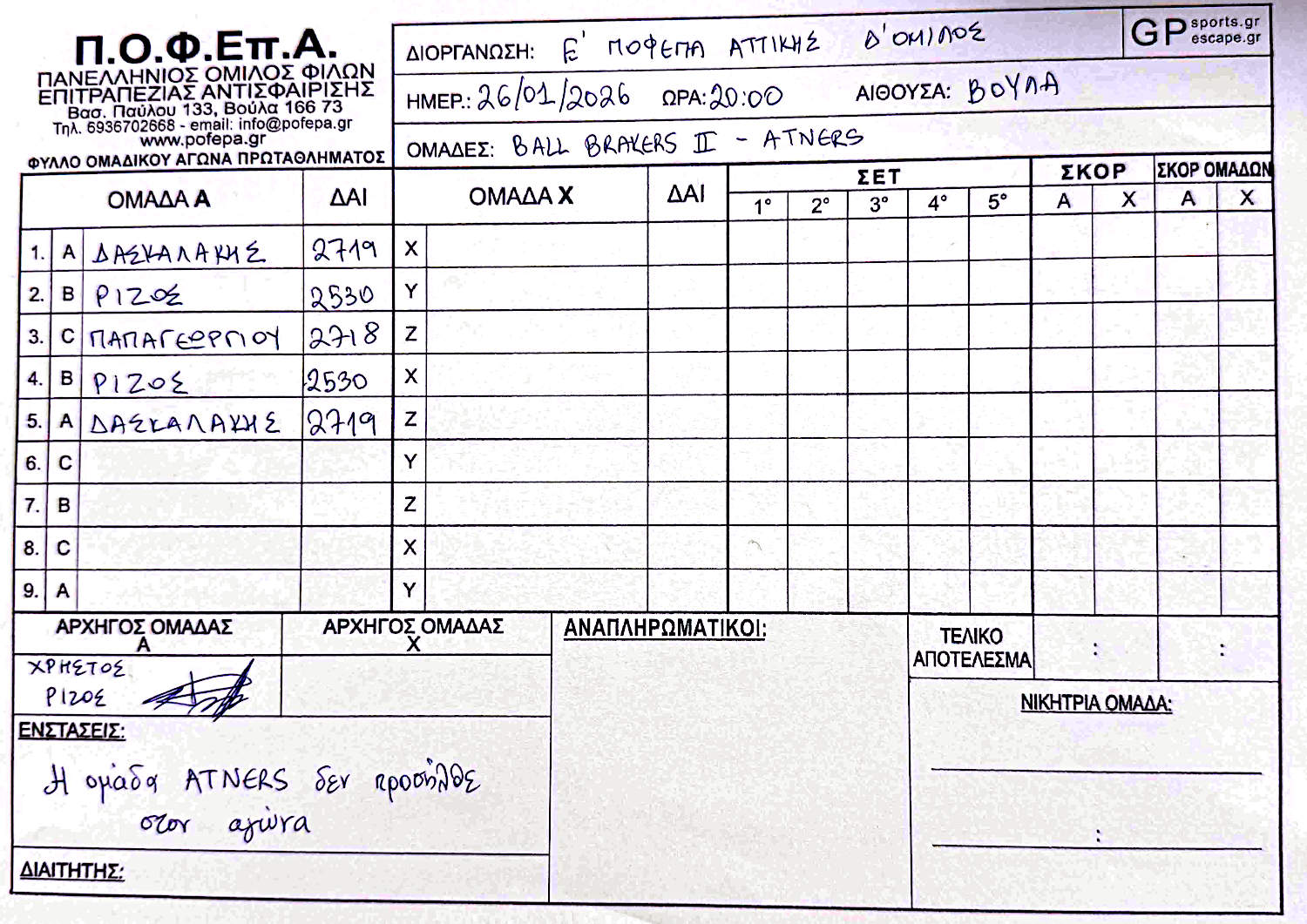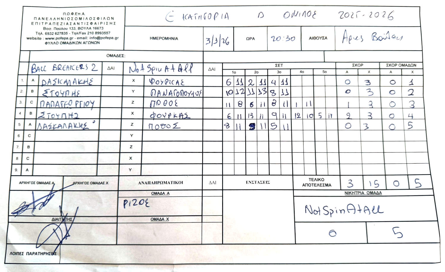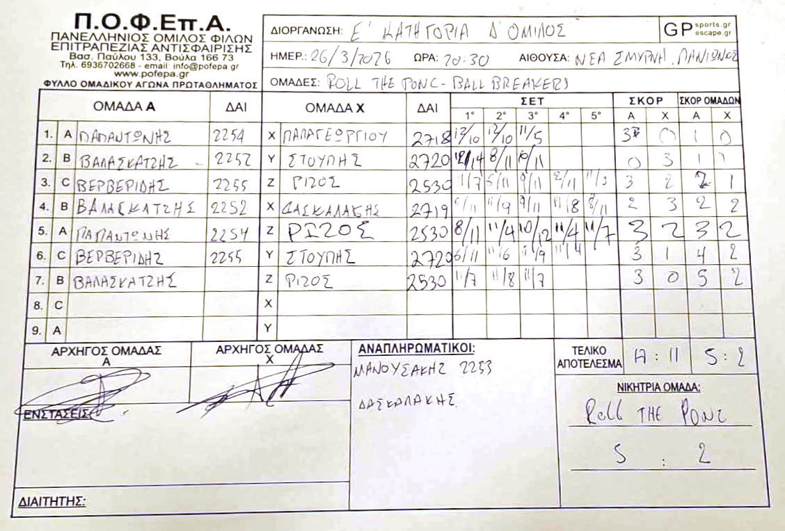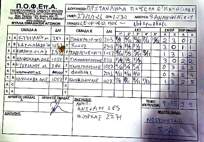 2η Αγωνιστική (27/10-2/11/2025)