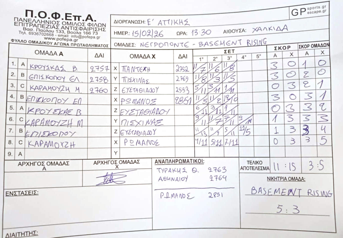 11η Αγωνιστική (9-15/3/2026)